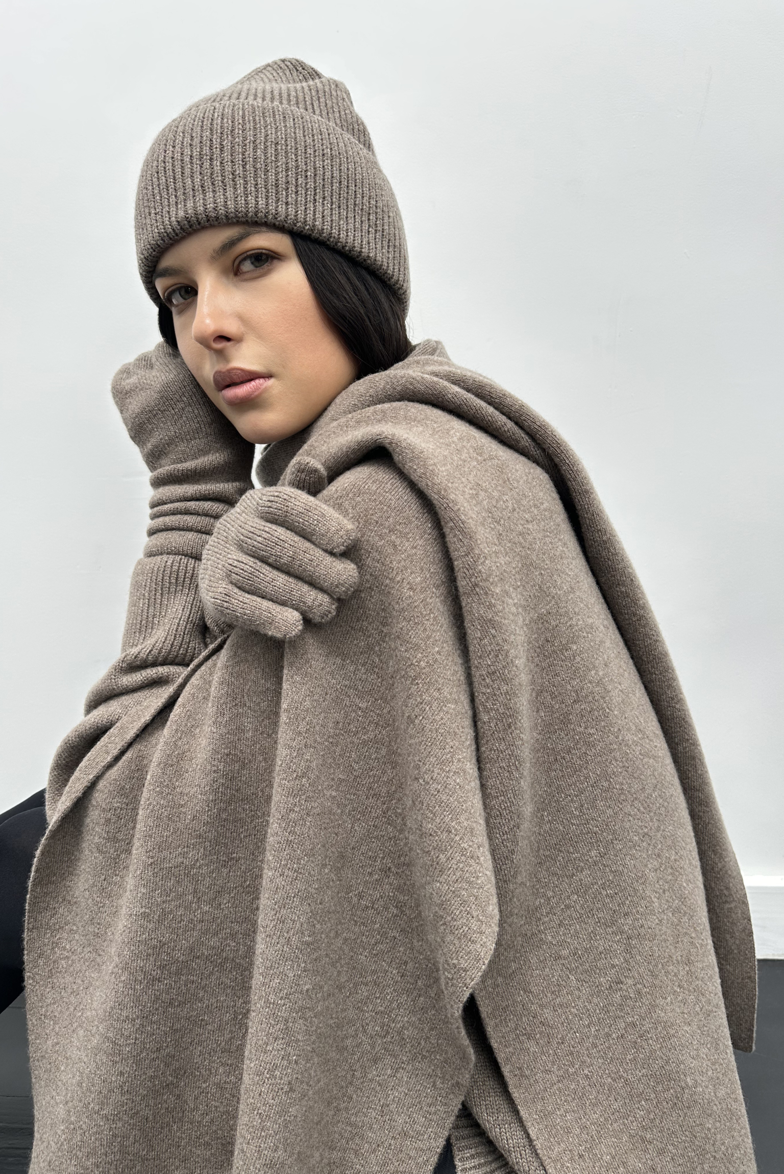 Шапка з кашеміру та вовни мериноса, кавова