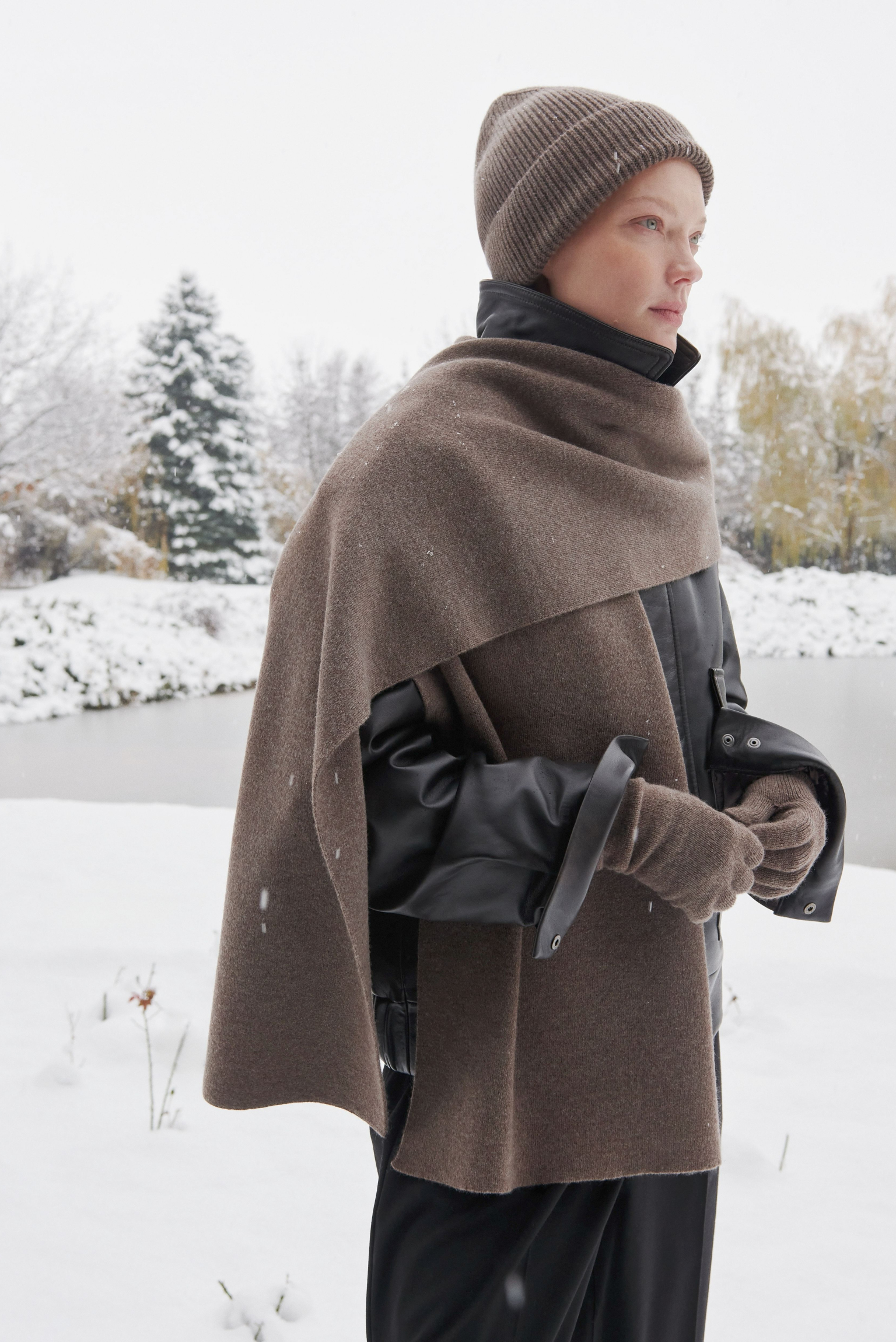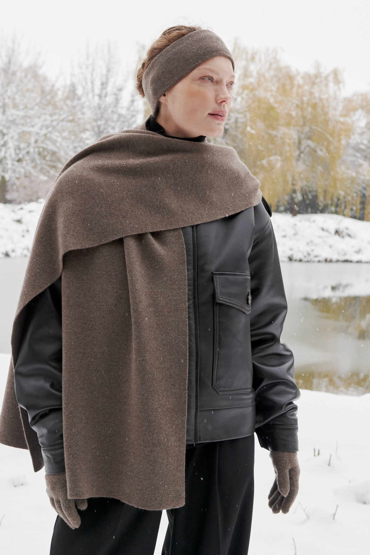 Шарф з кашеміру та вовни мериноса, кавовий