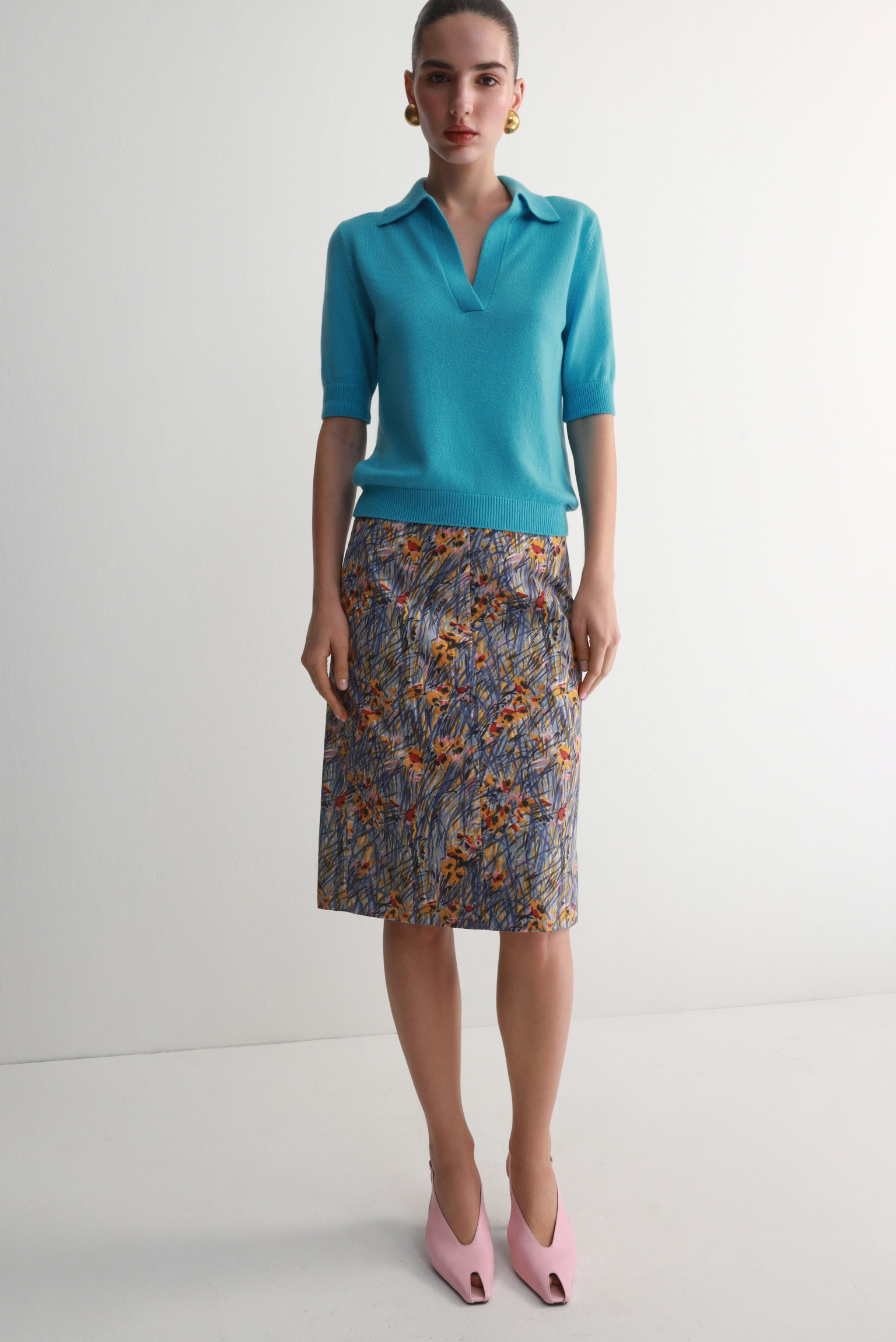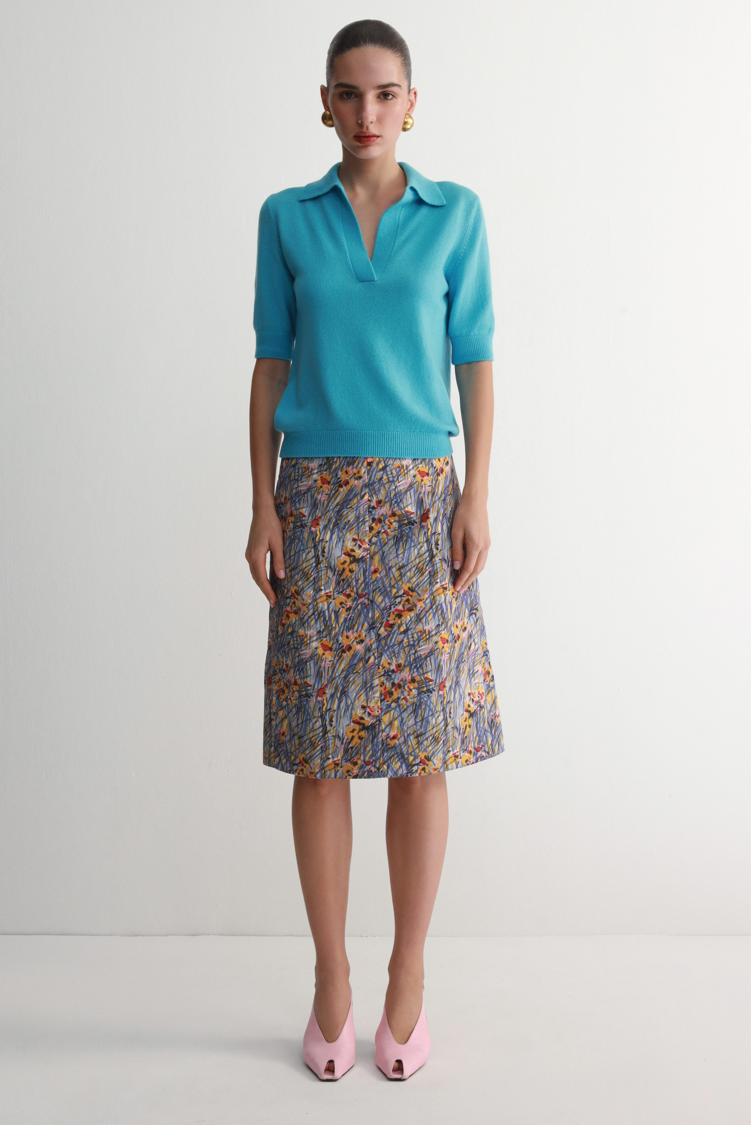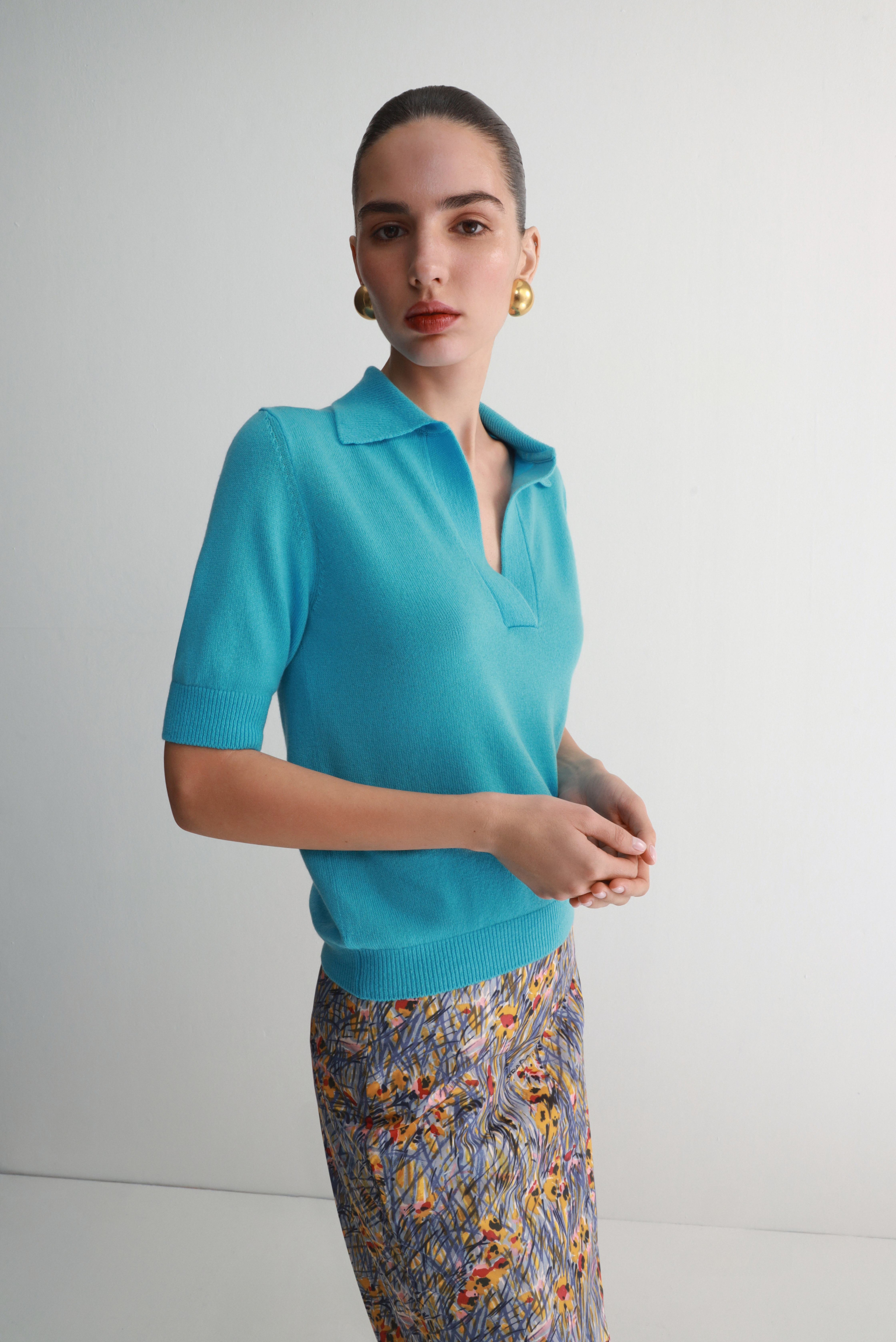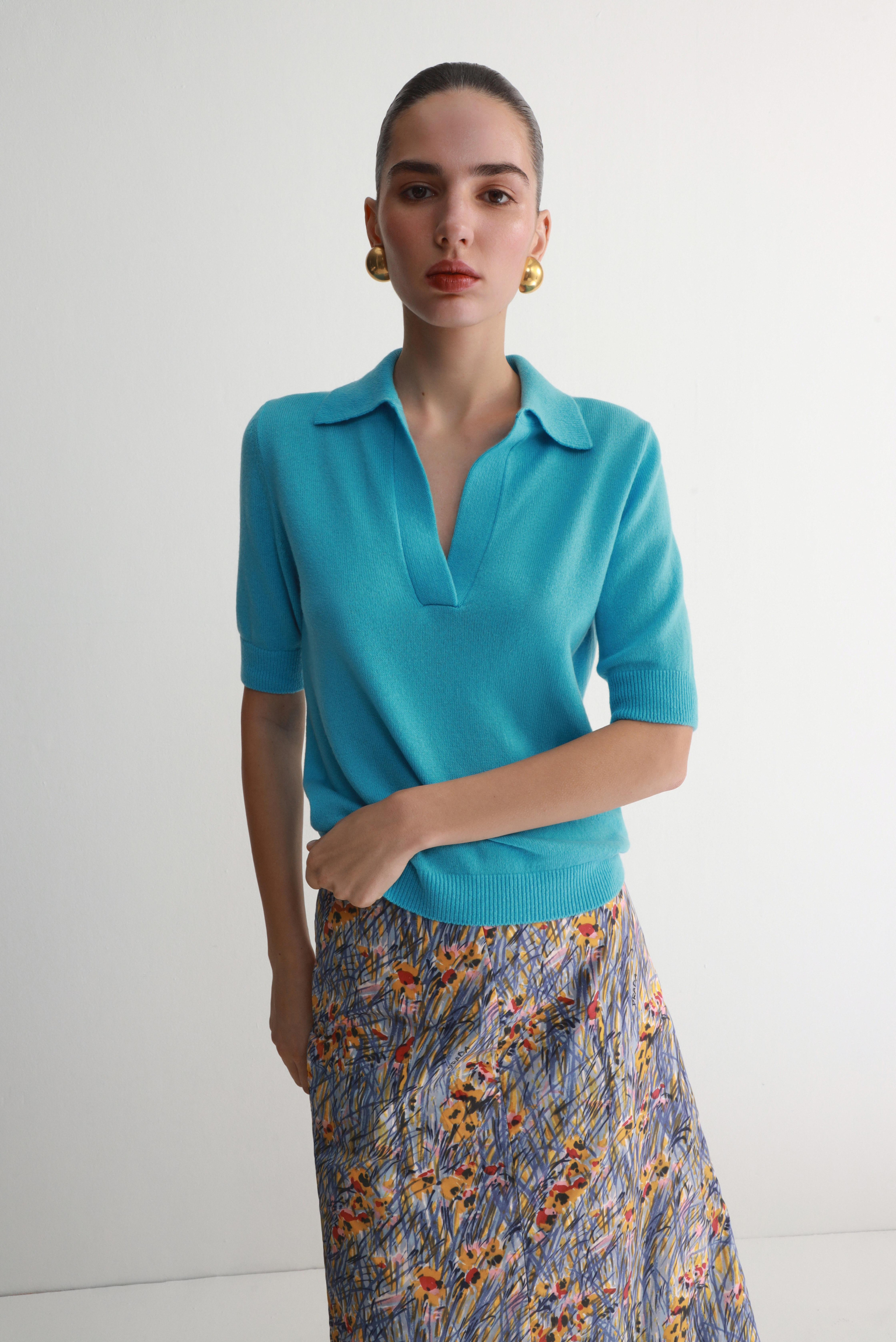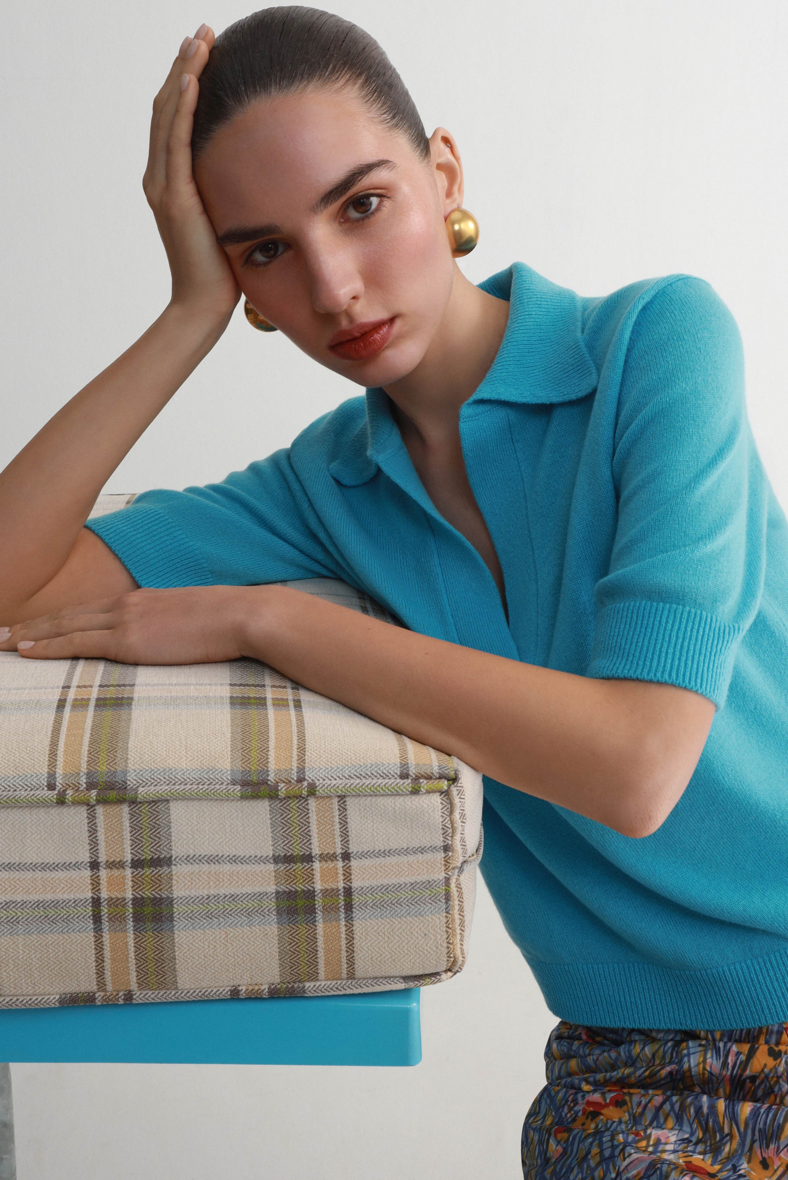 Сорочка поло з коротким рукавом, лазурового кольору.