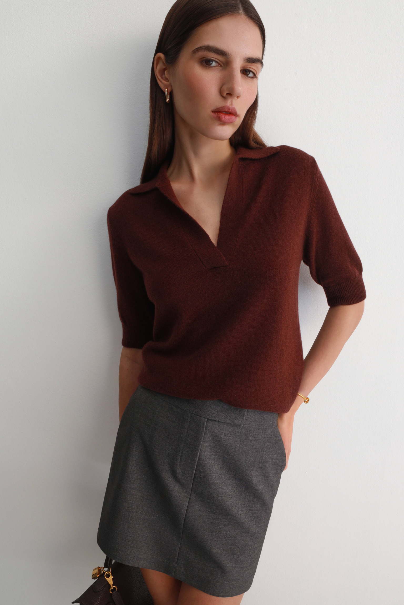 Сорочка поло з коротким рукавом, бордового кольору.